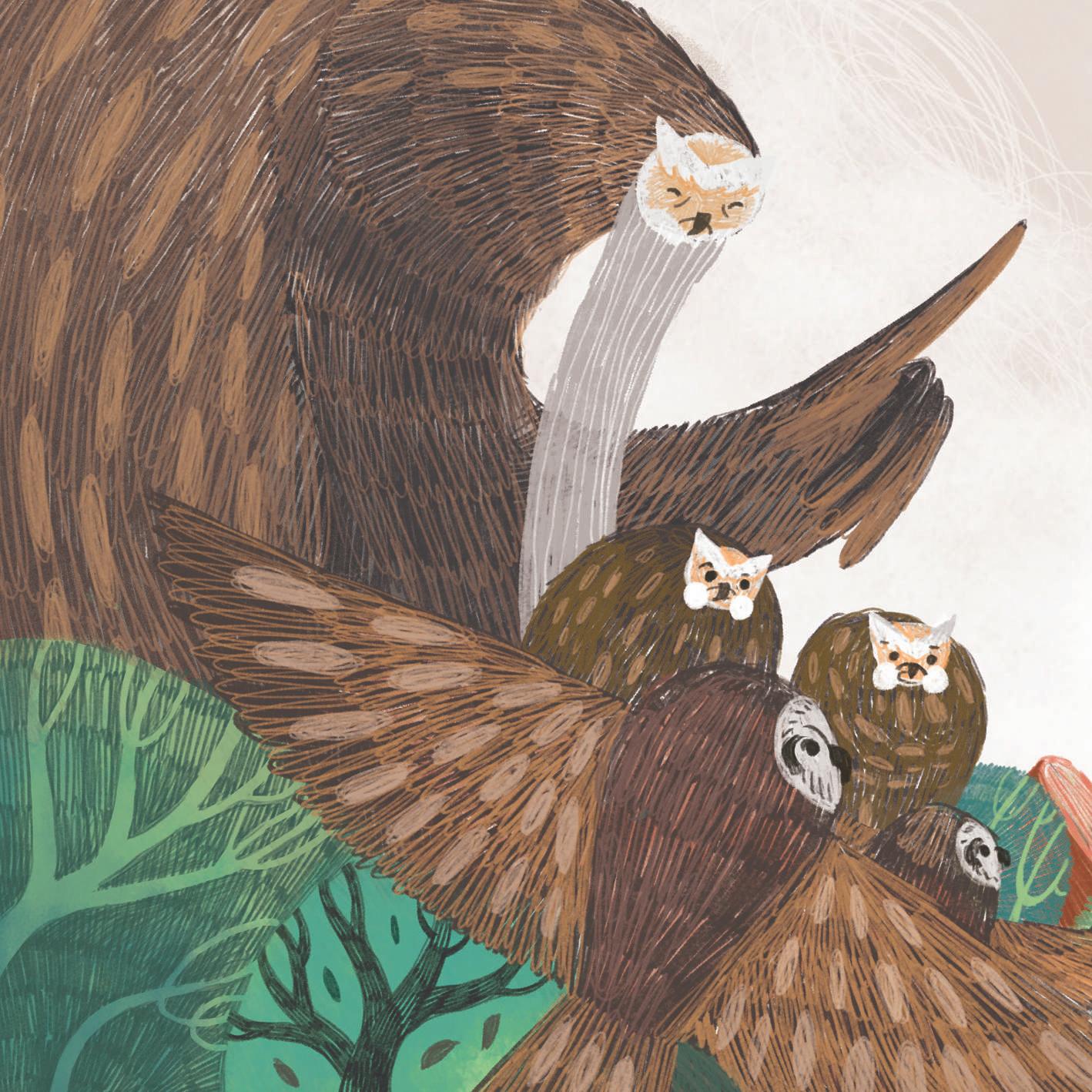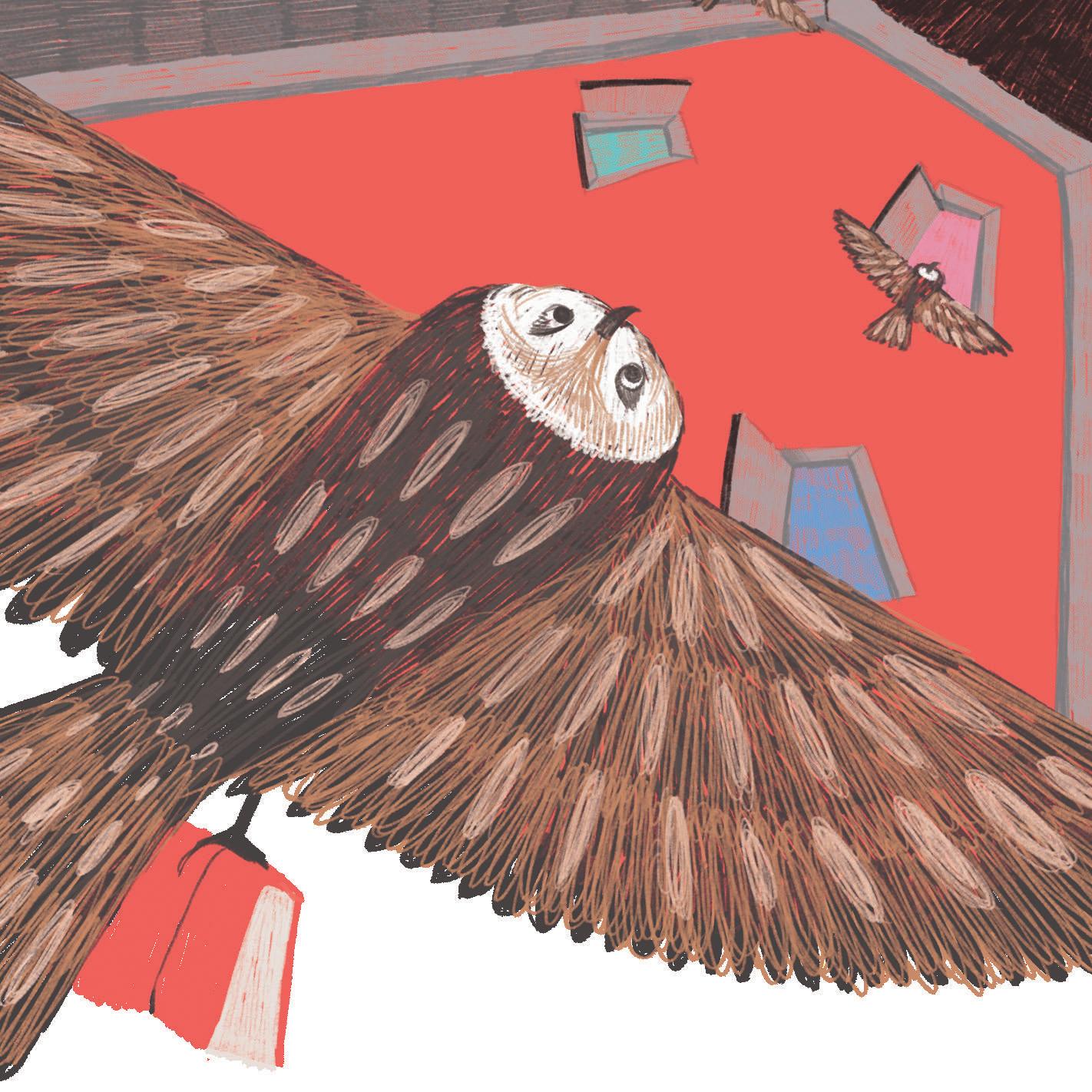 有的貓頭鷹很會飛行,所以就負責運送這些書本給小朋友。