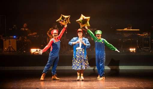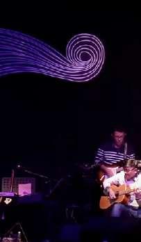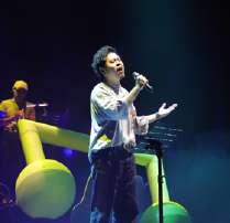真人樂隊在臺上專注演奏,身後的AI樂團,與他們協力奏出精確的樂 音,另一面牆則隨著現場旋律的起伏,跳躍出對應的音符。這場盛宴的呈 現,需要臺北、桃園及臺南三地,透過5G連線配合,才能譜出這場瑰麗的 藝術饗宴。