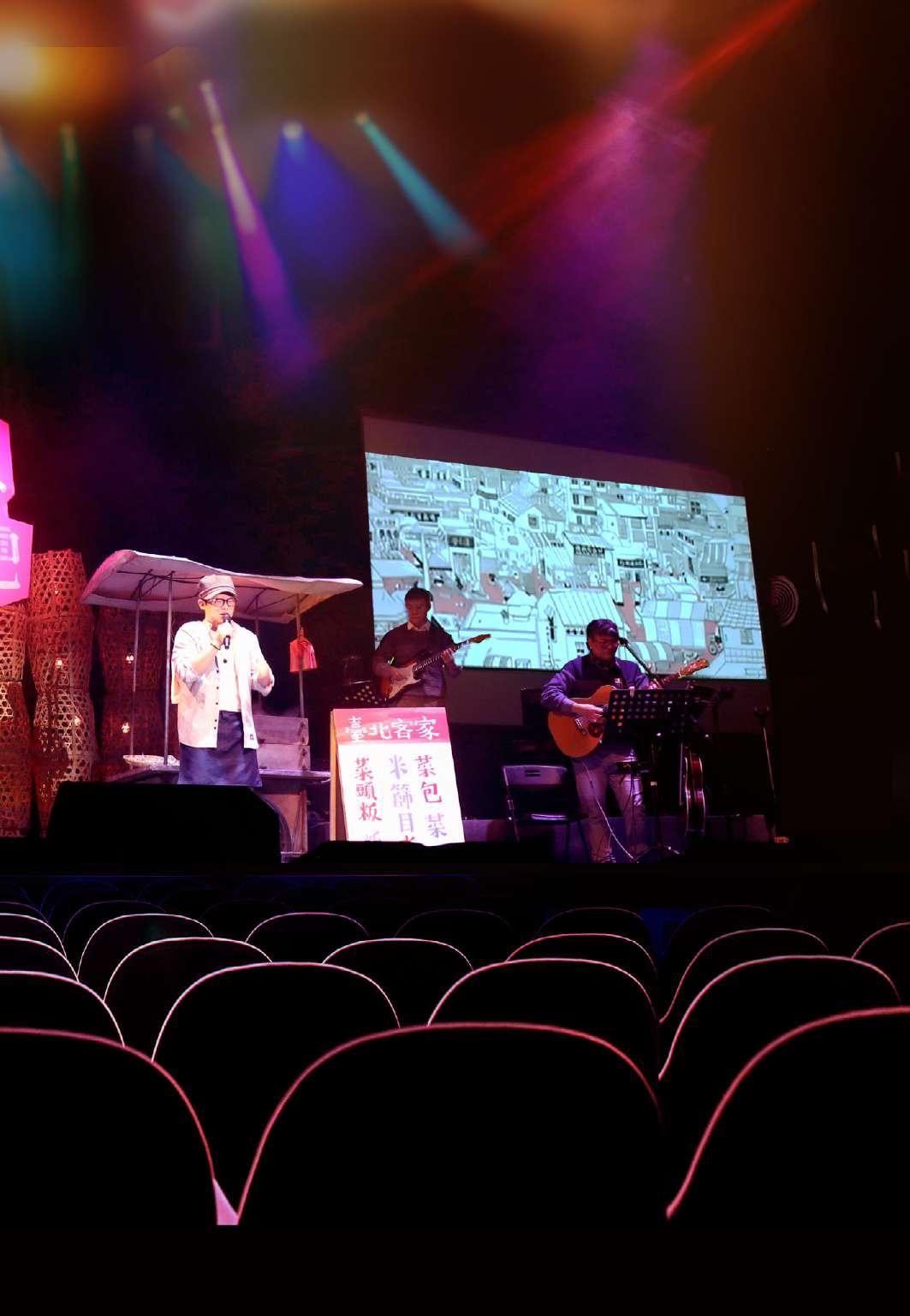 那一天,在松山文創園區的展演廳中,少女演員穿梭在影像與旋律之間, 臺上的音樂人演唱著專輯中每一首曲子,或激昂、或抒情,臺下觀眾們聚精 會神、掌聲不斷。說起當時去到非客家的場域演出,大家其實並不擔憂。前
