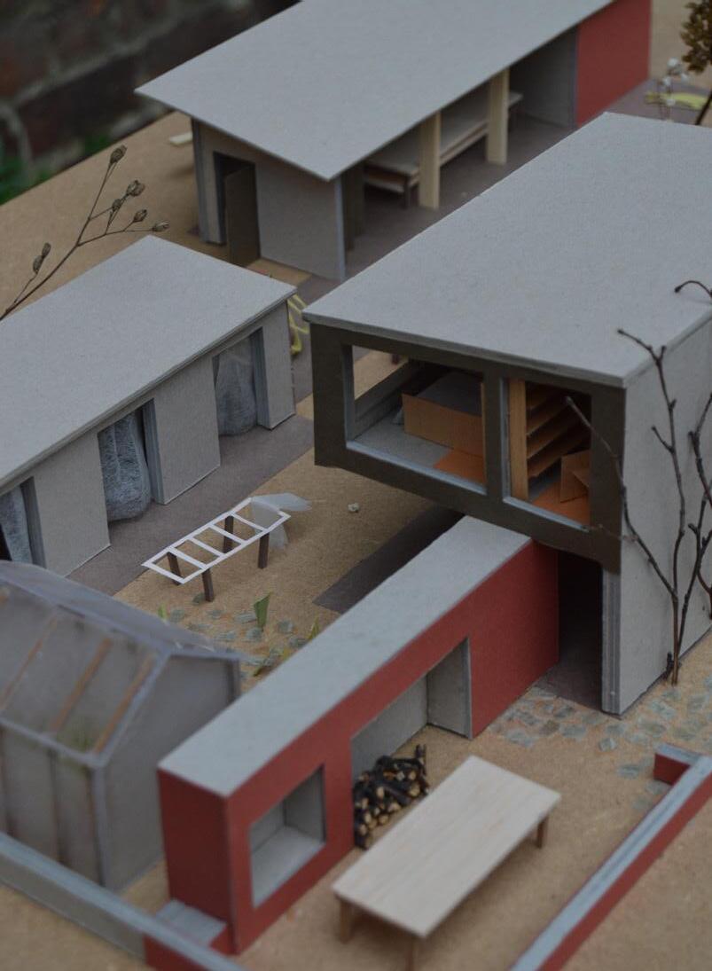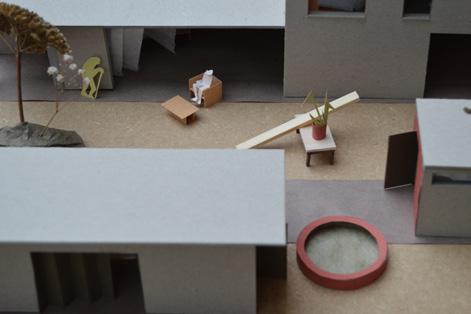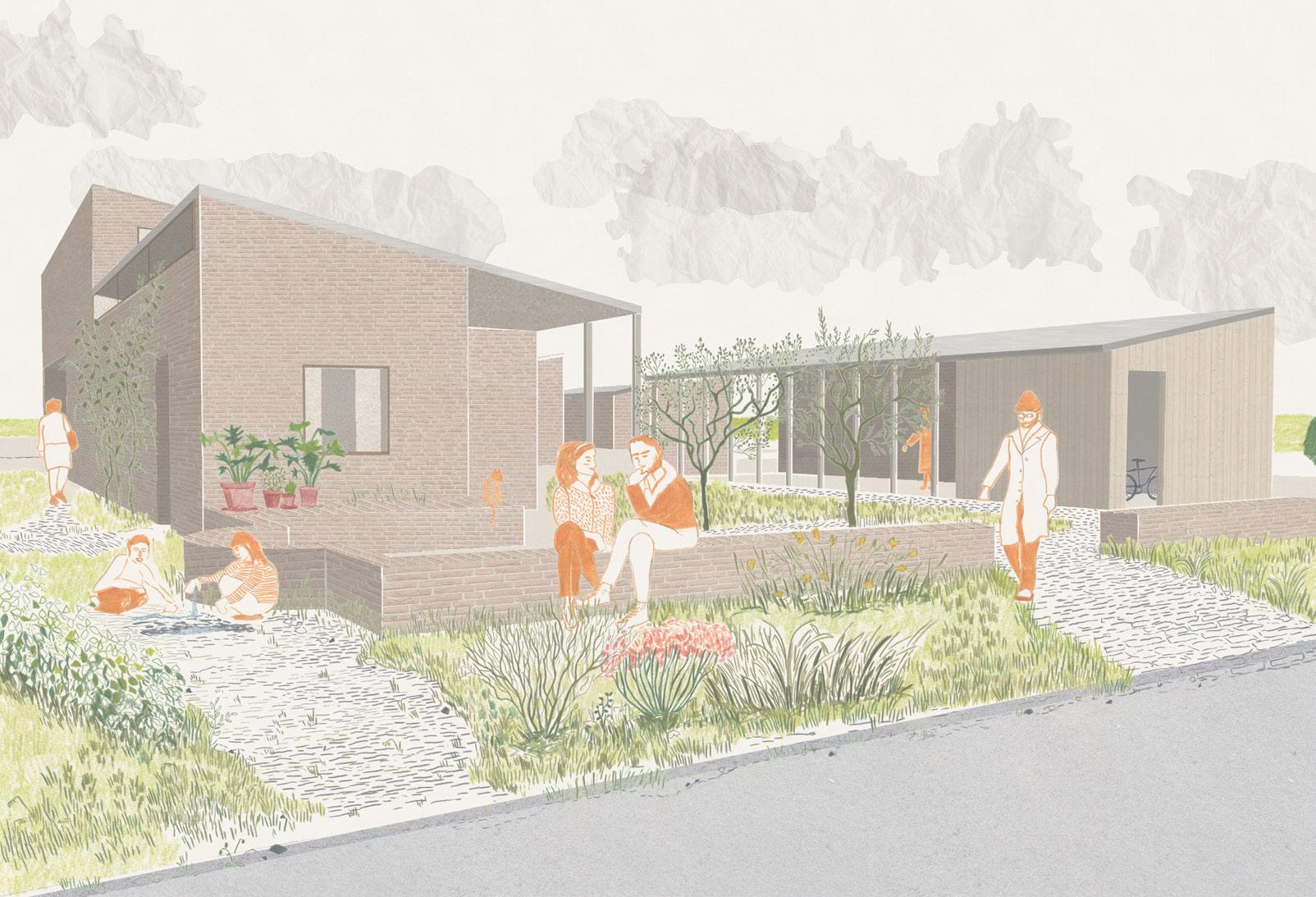By questioning: how the enclosure could gather neighbors instead of being a privative boundary? We investigate how hospitality could take place in a suburban housing estate. In Krainem, east of Brussels, the fields are meeting the last fragments of the city through individual housings, supermarkets, or other parking. First with urban rules implemented in the whole housing area (bocage, wall, and haha) and then directly from the home unit with shared services such as common laundry, bike shelters, vegetable gardens, green housings, and barbecue. The shared spaces could be used by all the inhabitants such as a workshop building. The back and front of the houses are blurred, and the gardens create continuity from the street to the fields as well as providing intimacy between the different housing units.