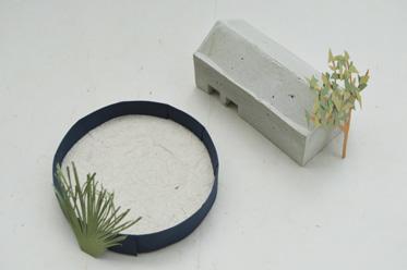 upside down is a proposal installation that turns down the sky to the ground and the other way around, as a vertical layering. The stones are hung to the ceiling to compose a heavy atmosphere. While the ground is covered by a light paper cloud. The landscape line, all around the room is the horizontal landmark. The raw materials are in opposition to the abstract composition of each layer. This abstraction relates to our unstable future which will need to connect to concrete matters in a way to survive.