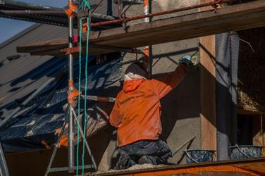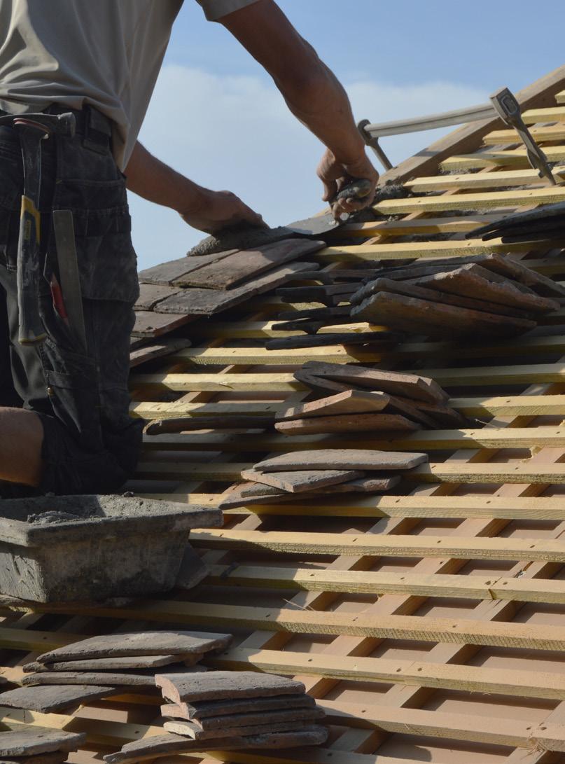 * laying of the frame, insulation, cover, earthen tiles, stone masonry