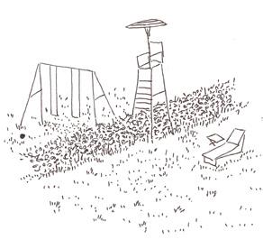 left_water storage for the vegetable gardens right_territorial map of continuous open spaces right page_some actors and the abandonned car