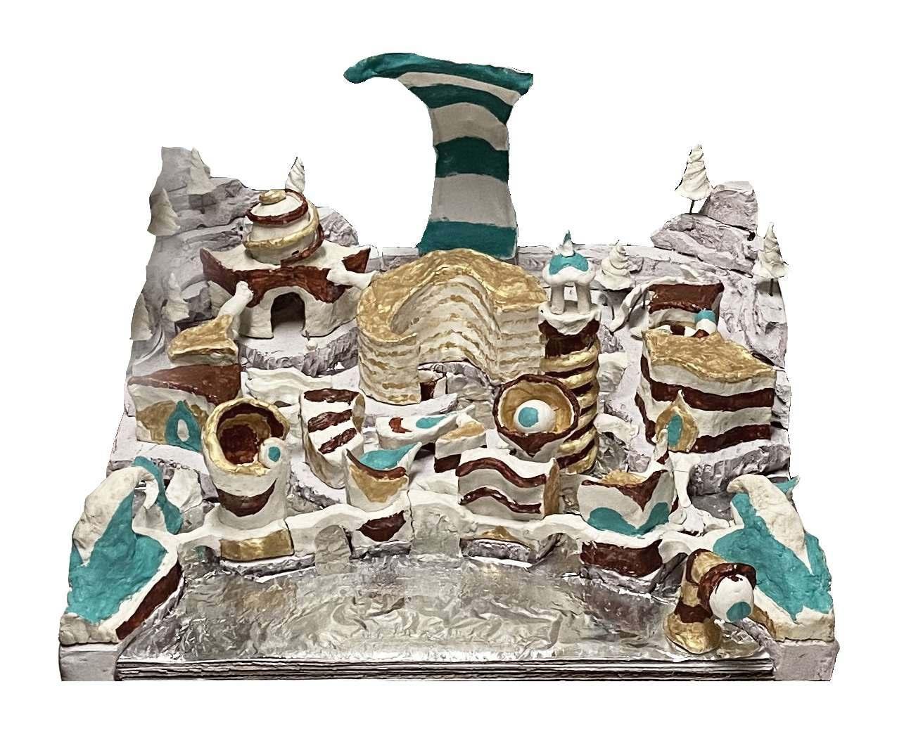 Most of the curriculum for my first semester of architecture centered around the Invisible Cities, a series of imagined spaces designed by Italo Calvino. The city I chose to explore was Esmerelda, described as a mysterious and infinitely complex maze of canals and tunnels. I imagined the city as a place where inhabitants spend most of their days simply playing in and exploring the world around them, and this playful, whimsical spirit is what I translated into my designs.