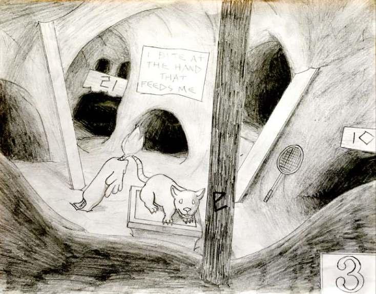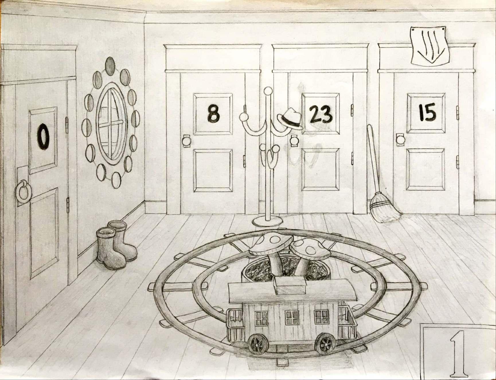 In 1985 came the release of Christopher Manson’s mystifying MAZE: Solve the World’s Most Challenging Puzzle. “This is not a book,” read the introduction. “It is a building in the shape of a book.” Each page portrays a room, with “doors” leading to other pages. As a child, I spent hours contemplating the mysterious spaces of MAZE until my dreams swam with images of numbered doors. The rooms have not only a striking melancholy but also an inescapable intensity, due to the fact that there is supposedly a right choice in every room, and somehow the room is telling you which exit to take. After years of planning and iterations, I eventually succeeded in creating my own version of MAZE, complete with an intricately complex web of puzzles. I believe I’ve emulated Manson’s work quite effectively, providing both a unique spatial experience and a devilishly difficult trial for all who dare enter.