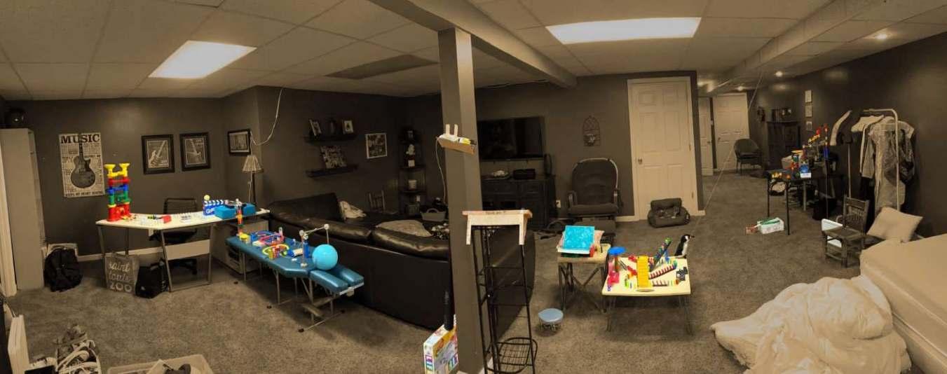 You may have heard that a Rube Goldberg Machine is an overcomplicated way of completing a simple task. This definition is not inaccurate, but I believe it is somewhat reductive. I would define a Rube Goldberg Machine as a contraption that masters the motion of objects. They tell stories, they surprise, and they interact with their environments in fascinating ways. I have been building these machines since I was five years old, and since then they have developed into complicated room-wide displays. Of course, these pictures don’t do them justice-scan the respective QR codes to get a better look!