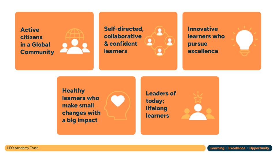 Our aim, that all children should have access to an ambitious curriculum which develops them for the challenges of life, is underpinned by our LEO Pupil Outcomes. These outcomes extend the curriculum offered at every LEO school and ensure we provide a rich, broad curriculum that prepares children for their future. This includes making sure all pupils have the fundamental skills to access the technology of the future.