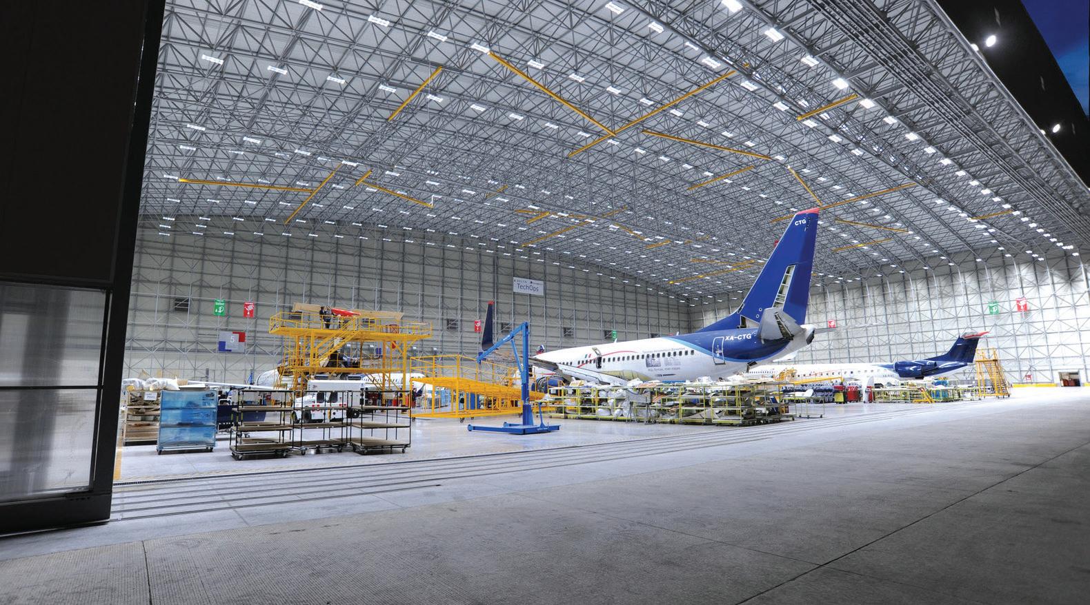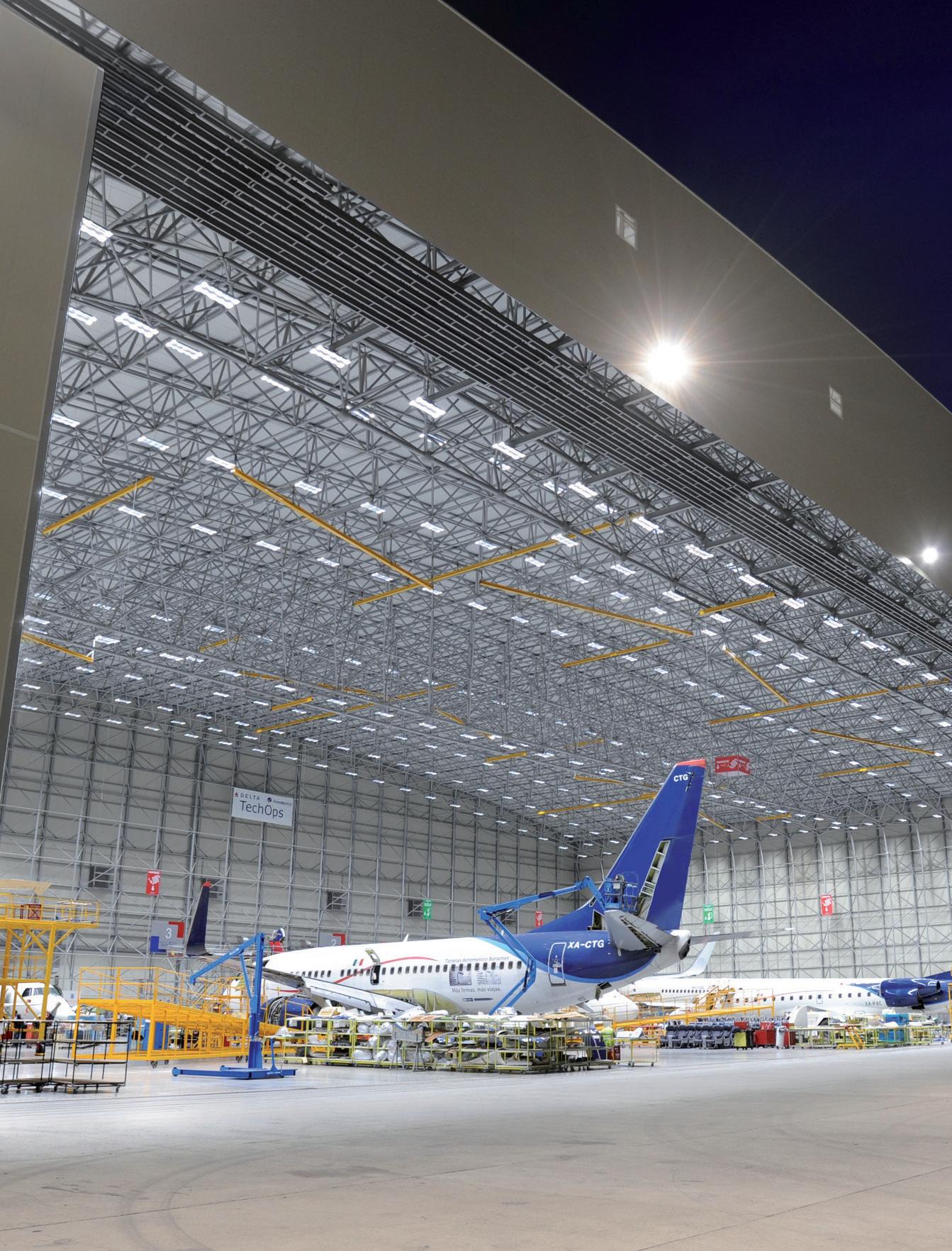 LEO A DALY was selected to provide concept designs and programming for Delta Air Lines and AeroMexico’s new joint maintenance facility in Queretaro, Mexico. We teamed up with contractor GMI to create an innovative, cost-effective, and lowmaintenance design for the 500,000-square-foot joint facility. Using GMI’s innovative hub-and-spoke space frame system, designed for clear spans, construction costs were kept low and future upkeep to a minimum. The three-hangar concept provides for up to nine narrow-body aircraft positions, or four larger, widebody aircraft positions.