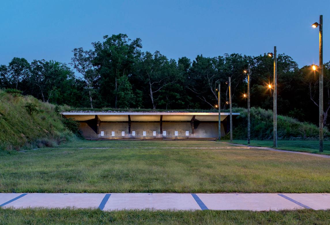 The 26.4 acre site sits within a unique wildlife-rich environment paying careful attention to mitigate migratory patterns and environment of local wildlife and noise sensitivity to surrounding areas. The project additionally planned for a future third 50- yard range, expansion of the 300-yard range to 500 yards with engineered berms as well as potential development of additional training structures, including a shoot house and gas house for tactical training.