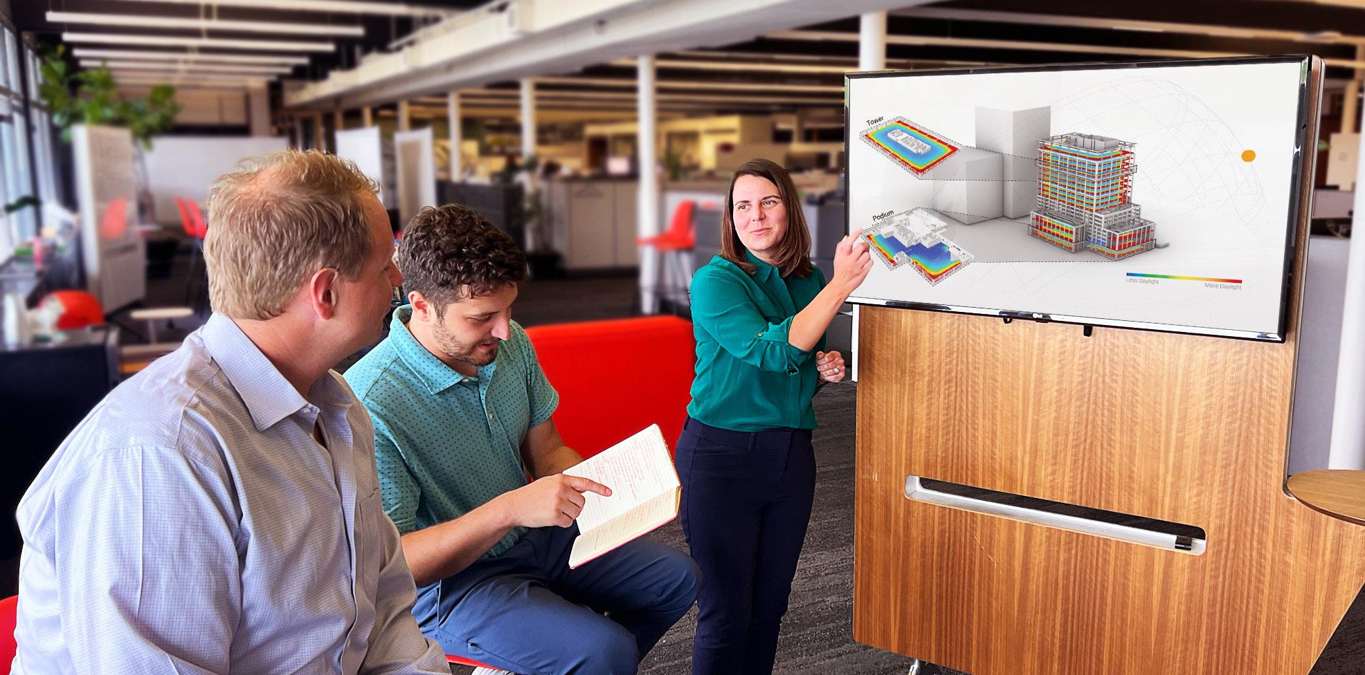 We’ve undertaken a variety of measures to ensure our employees understand embodied carbon and that we stay on the forefront of new technology. We’ve hosted presentations and webinars across the 400-plus member firm. These range from introductory “Embodied Carbon 101” to in-depth technical presentations about designing to reduce embodied carbon emissions. Our GreenWorks group and structural engineers have received specific guidance to further advance their understanding. We’ve also launched a quarterly internal sustainability newsletter which includes embodied carbon education.