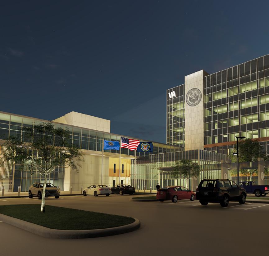 The Veterans Hospital in Tulsa is a $150 million adaptive reuse project transforming an office complex into a 58-bed medical-surgical inpatient hospital for the veterans of Oklahoma. The project coverts and combines two outdated office buildings to create a 300,000 sf high-performance hospital. The existing structure is a fully concrete frame system on deep foundations, including more than 15,000 tons of concrete. The includes complete renovation of all existing work environments. The project also includes a seismic force resisting system upgrade, lengthening the lifespan of the building. LEO A DALY and GH2 provided professional design services.