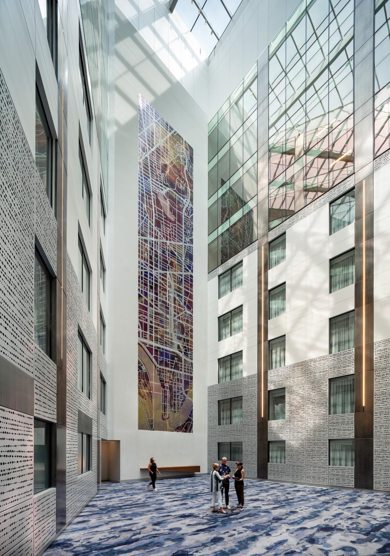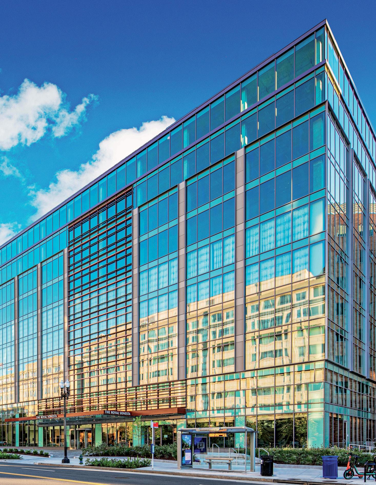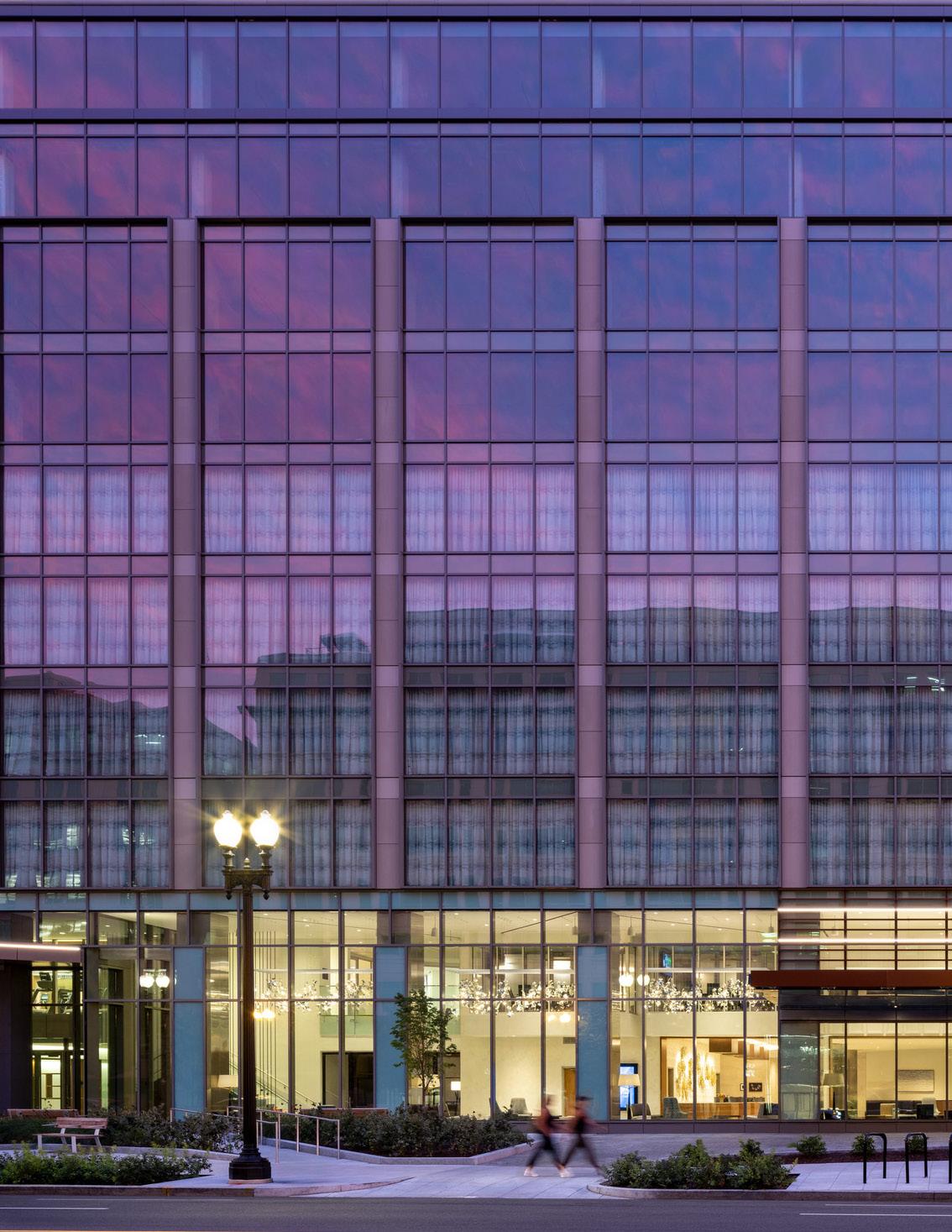 Developer The RMR Group challenged LEO A DALY to reimagine 20 Massachusetts Ave NW, a former federal office building, as a vibrant mixed-use development. The adaptive reuse project re-stitched the building into an evolving urban context and created a vital new social and cultural hub for the neighborhood. The resulting building combines ground-floor retail and restaurants to create a vibrant streetscape with an inviting entrance and pedestrian experience, a four-star hotel and Class-A office space with shared amenities between users, a penthouse ballroom and executive suite and an extensive green roof.