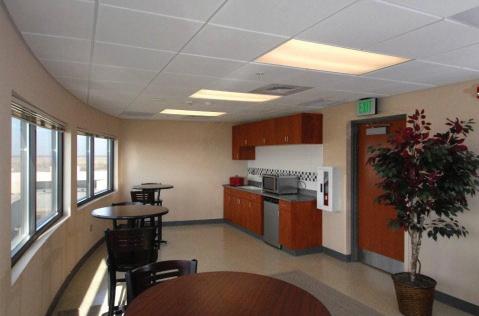 The roof of the two-story base building supports a photovoltaic system and also was designed as an antenna array. Parking shelters also support photovoltaic panels that were necessary to meet the requirements of LEED® Gold certification.