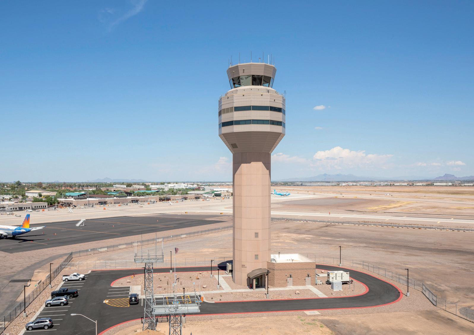 Partially funded under the FAA Contract Tower Program, this new ATCT replaces the a 1968-vintage tower originally constructed to serve the former Williams Air Force base airfield.