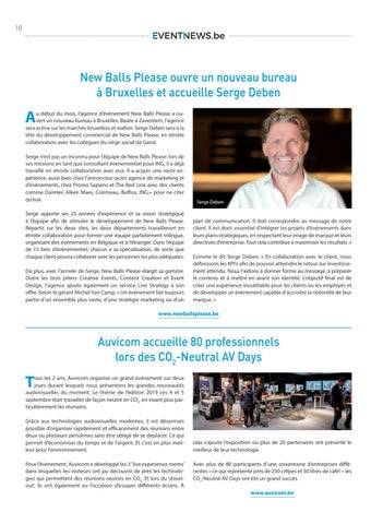 u début du mois, l’agence d’évènement New Balls Please a ouvert un nouveau bureau à Bruxelles. Basée à Zaventem, l’agence sera active sur les marchés bruxellois et wallon. Serge Deben sera à la tête du développement commercial de New Balls Please, en étroite collaboration avec les collègues du siège social de Gand.