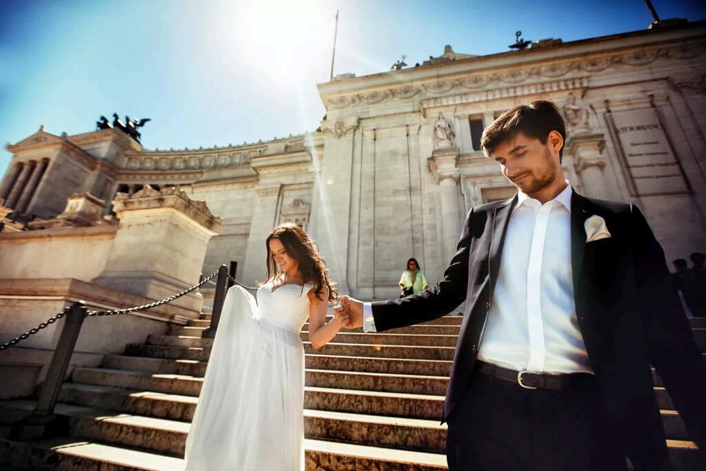ELOPING IN ROME THERE IS THE POSSIBILITY OF MAKING YOUR ELOPEMENT WEDDING COINCIDE WITH YOUR HONEYMOON. ROME IS ONE OF THE TOP DESTINATIONS IN THE WORLD TO VISIT FOR YOUR HONEYMOON BECAUSE IT OFFERS A 360-DEGREE EXPERIENCE: GREAT FOOD, WINE, MUSEUMS, ARTS. ROME OFFERS THE POSSIBILITY TO REACH EVERY OTHER ITALIAN CITY BY HIGH SPEED BY TRAIN OR BY RENTING A CAR. FLORENCE FOR INSTANCE IS ABOUT 1 HOUR BY TRAIN FAR. ROME IS FANTASTIC ALSO IN THE LOW TOURIST SEASON, FROM APRIL TO MAY, AND FROM SEPTEMBER TO THE END OF OCTOBER. THE PRICES OF THE STRUCTURES IN THIS PERIOD ARE MUCH CHEAPER AND THE CLIMATE IS CERTAINLY MORE PLEASANT THAN SUMMER.