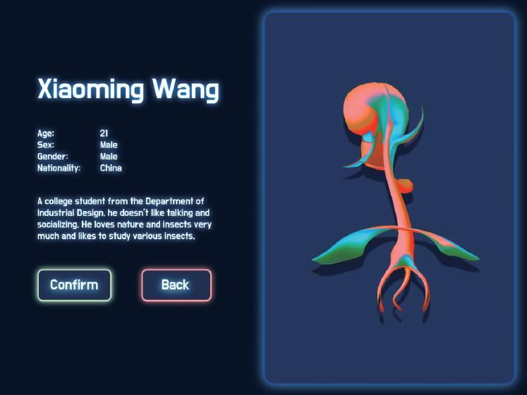 Nationality: China Bio: A college student from the Department of Industrial Design, he doesn’t like talking and socializing. He loves nature and insects very much and likes to study various insects.
