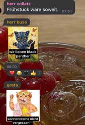 alle in der Welt verstreut und arbeiten zu unterschiedlichen Tageszeiten… Und ich vermisse meine Leistungskurse! Ich hatte Kunst und Deutsch und es war einfach großartig, täglich Sachen zu lernen, für die ich mich wirklich interessiere. Ja- und manche Lehrer:innen… Über die Jahre hat man sich natürlich schon daran gewöhnt, jeden Tag zu quatschen und sich zu sehen. Das fehlt mir auch!
