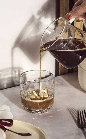 Ein Highlight sind die verspielten Weihnachtsmänner und Hirschfiguren oder die puristischen LED-Vasen mit geriffelter Struktur und goldenem Sockel. Für einen stimmungsvoll gedeckten Tisch sorgen goldene Sekt- und Weingläser sowie braune Teller und Schalen mit haptischer Oberfläche. Die Kollektion wird durch LED-Kerzen ergänzt, die sanfte Sternenreflexionen zaubern, sowie durch liebevoll designte Becher und Tassen mit weihnachtlichen Motiven, die beim gemeinsamen Frühstück besondere Momente schaffen.