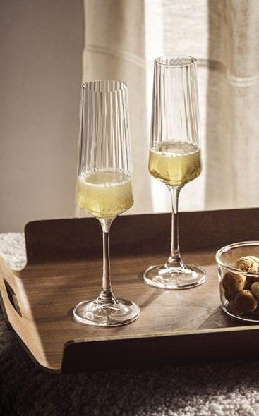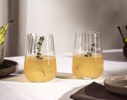 Wenn sich das Licht in den facettierten Strukturen bricht und der Inhalt elegant zur Geltung kommt, entsteht ein harmonisches Zusammenspiel aus Design und Genuss. Die Glasserie PAOLO bereichert jede Tafel mit ihrer ausdrucksstarken, zugleich ausgewogenen Formensprache. Sanft geschwungene Linien und großzügige Proportionen setzen stilvolle Akzente, während das verspielte Innenrelief für überraschende Lichtreflexe sorgt.