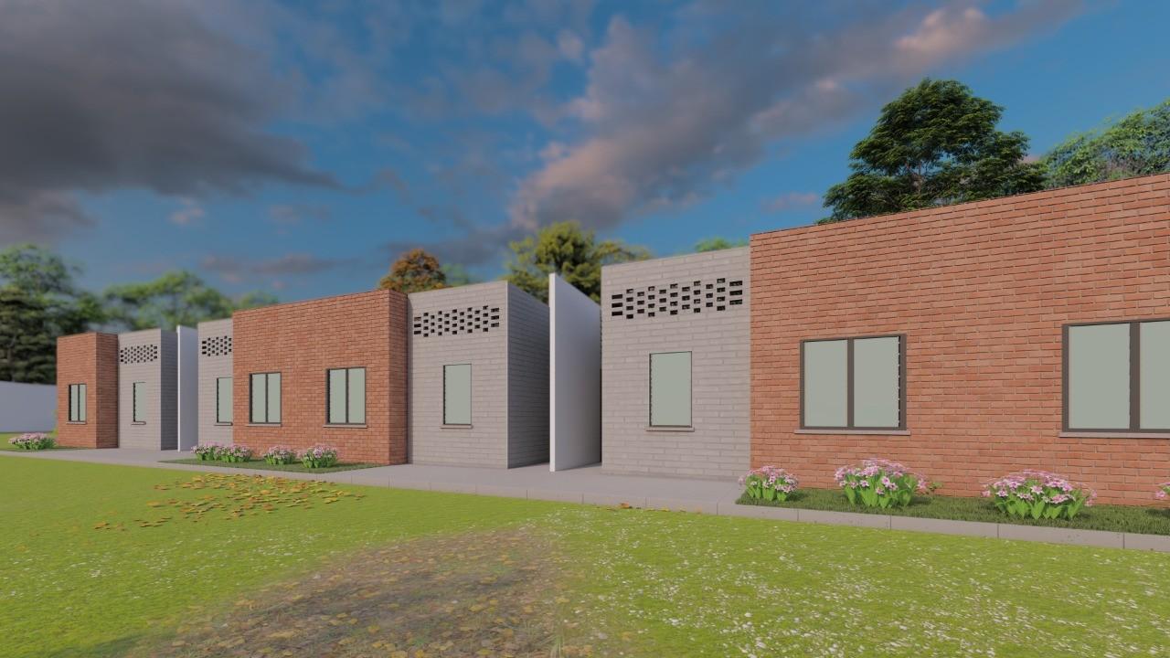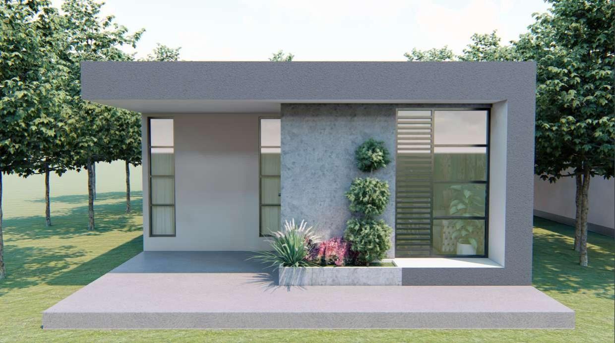 Diseño de vivienda de interés social con medidas mínimas estandarizadas, mediante uso de materiales puros como el ladrillo a la vista, perfiles metálicos y madera.