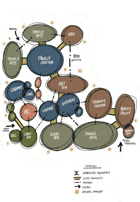 For our semester studio project, we were asked to choose a partner and design and create halfway home community in Arizonafrom start to finish. We decided to create a space for women that have been recently incarerated - which included necessary research in understanding the process of a trauma induced design framework allowing for successful reentry for these individuals backintosociety.Designchoicesandinspirationthrivearoundnaturalproducts,cleanliness,generalmindfulness,andothertrauma basedframeworks. Theunderlyingpurposeisbuildingasenseofsafety,rehabilitationandreentryintothecommunity.