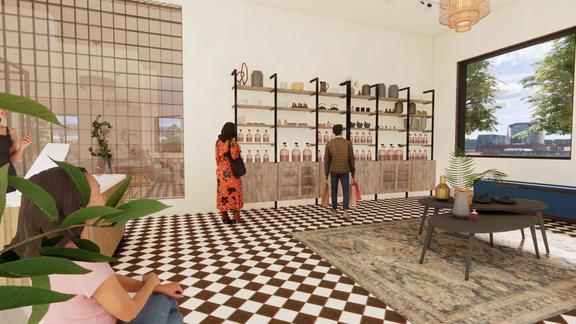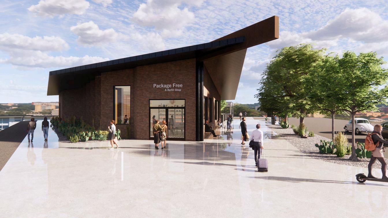 Foroursemesterstudioproject,weweregivenanadpativereuseprojectofthePaperHeartGalleryinPhoenix,Arizona.Idecidedto create a space for the new Package Free HQ - a company that revolves around bringing sustainable products to the world through an online marketplace of items. Design choices and inspiration thrive around manufactoring and creating access to organic and natural products, accessible cleanliness, Earth consciousness and general mindfulness. Materials and daily use directly corelate with Package Free’s love for the planet and drive to protect Mother Earth. The underlying purpose is to build a sense of accountabilitywithinourcommunity,ahealthyemployeeenvironmentandagrowingnetworkofclimateactivists.