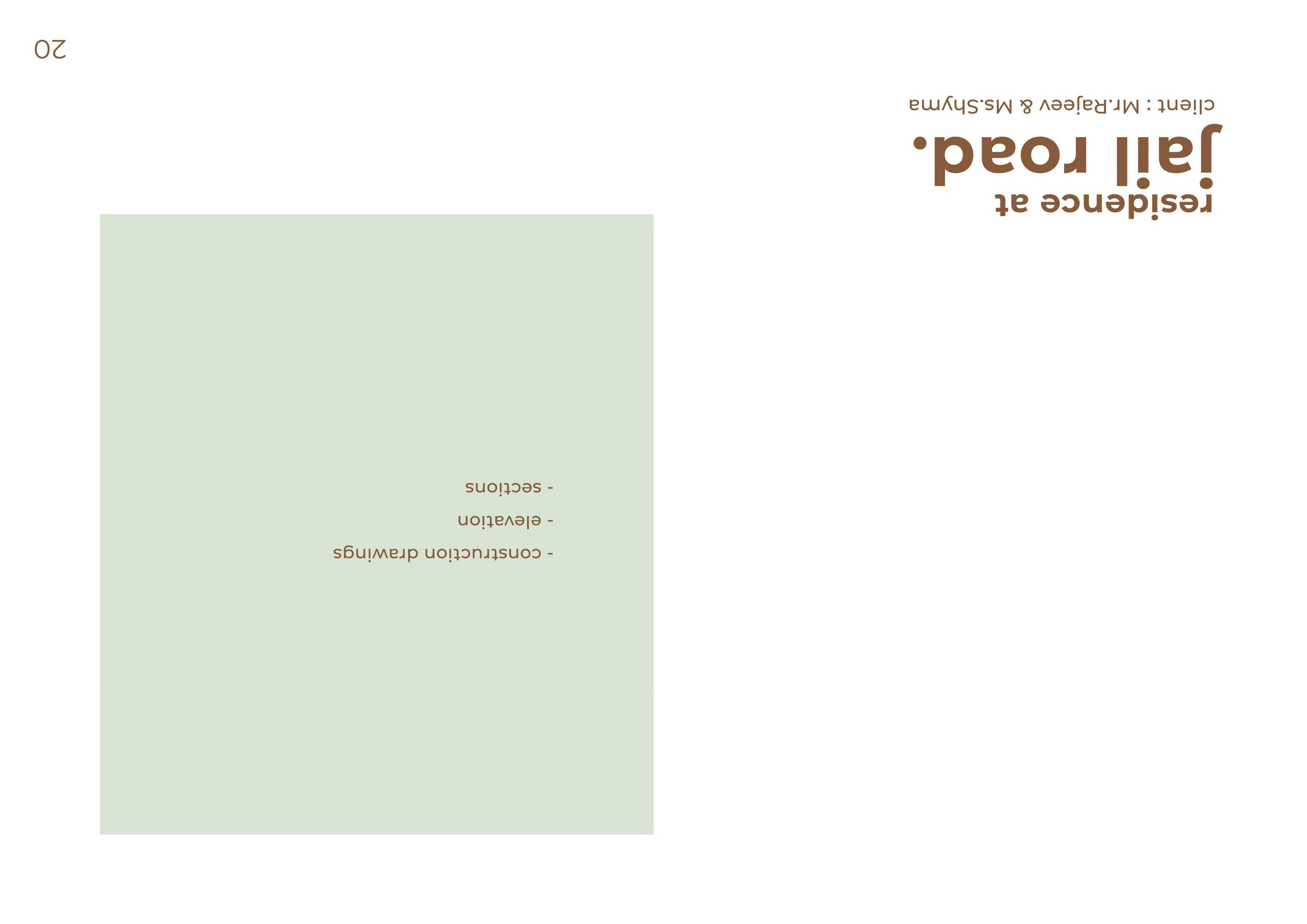 The contractor must verify all dimensions at site and report any discrepancies to architect before executing the work. Drawings are copyright of architect All dimensions are in centimeters, unless otherwise specified All wall thickness are 23 cm's and 13 cm's, unless otherwise specified Refer structural drawing for structural detail RESIDENCEProject: AT JAIL ROAD Mr.Client:RAJEEV & Ms. SHYMA Drg. CONSTRUCTIONTitle: DRAWING CAD 1:50Se/Ong/Shy/Wrk/ConRef:Scale:DrawnBy:CheckedBy:SheetNo:JobNo:798/22RevisionNo:Date:05/05/2022LEONA A R C H I T E C T S S A N D H Y A ADITHYA14/14 DRAWING NOT CONSTRUCTIONFOR LEFT SIDE ELEVATION
