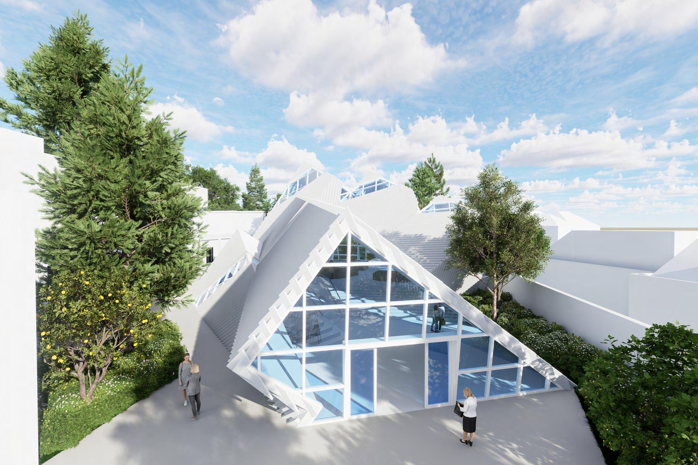 Designed as a sustainable and space-efficient structure, the greenhouse features a diagrid steel framework that maximizes natural light penetration while supporting hydroponic and soilbased growing systems. Vertical farming towers and tiered planters accommodate a diverse range of crops, reducing the footprint while enhancing yield. By fostering local food production and reducing transportation emissions, the greenhouse serves as a model for resilient and sustainable urban agriculture in coastal European cities.