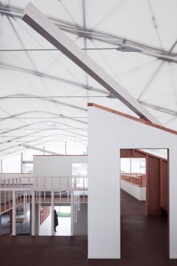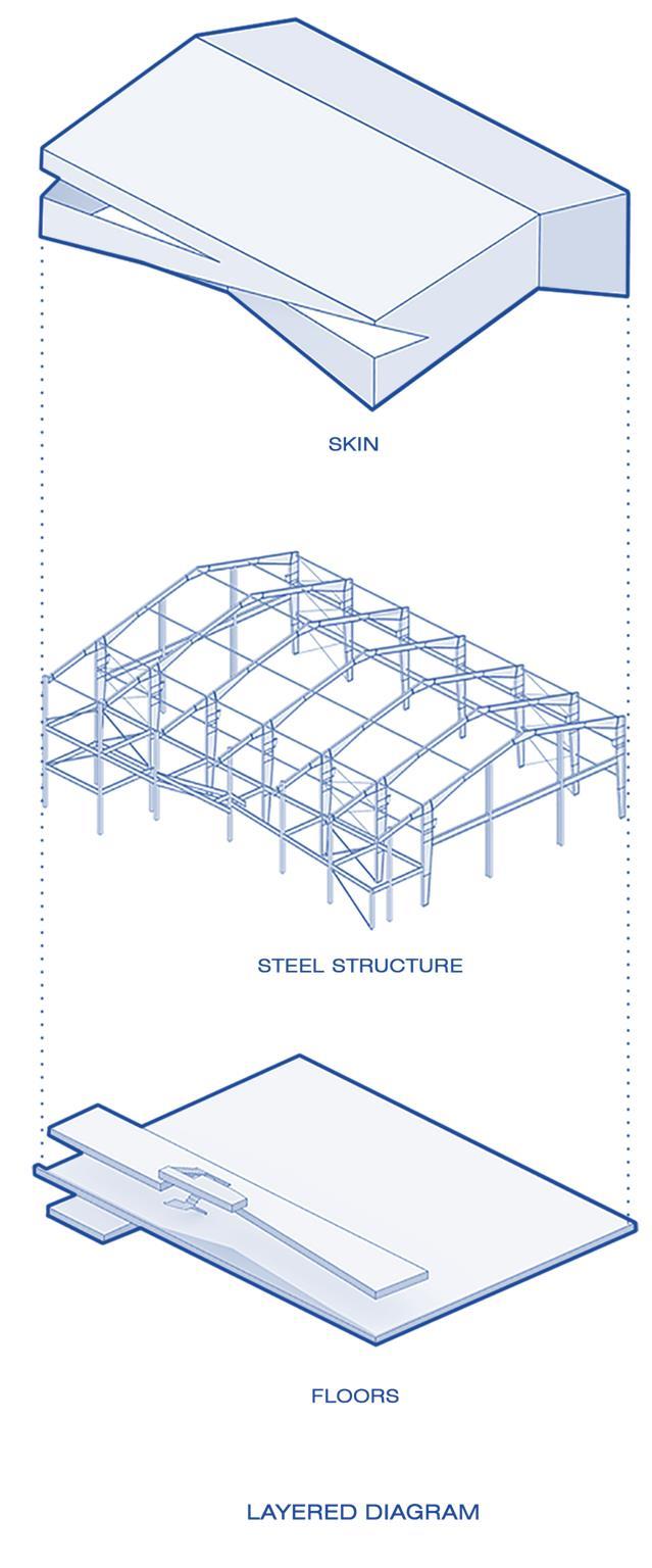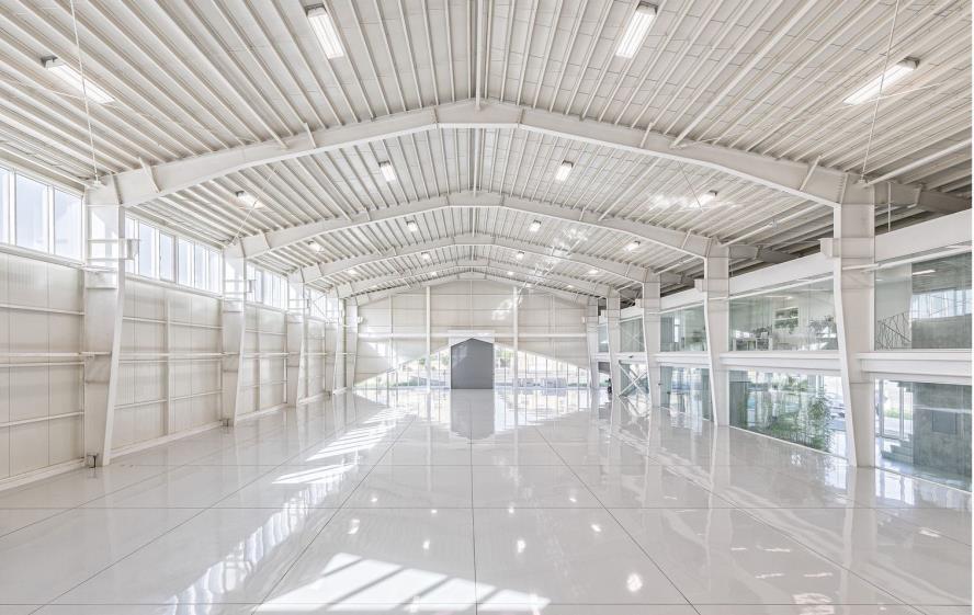 Thiết kế một cái kén trắng trên toàn bộ cấu trúc là điểm khởi đầu cho sự biến thái của cấu trúc chính để tạo ra một biểu thức thống nhất của một dạng động Nhà kho sử dụng kết cấu khung phẳng thép đặc Màu trắng là màu duy nhất đến từ nhà máy, như một hương vị của thiên nhiên bên trong không gian công nghiệp và từ gốm sứ, là sản phẩm của nhà máy mà toàn bộ dự án được xây dựng để hỗ trợ và cung cấp các thiết bị lưu trữ Các kho và quản lý như không gian trung gian cung cấp ánh sáng và xem cho nhau