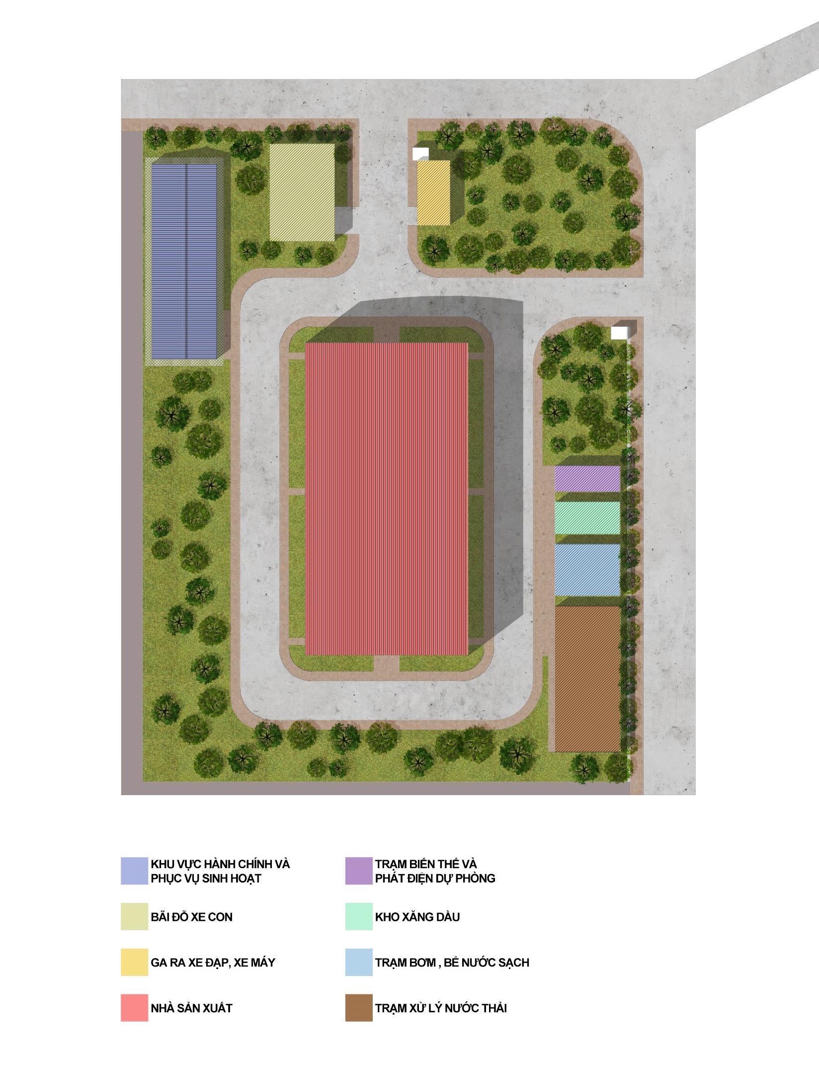 Là công trình sản xuất các vật dụng, thiết bị làm vườn, việc sử dụng màu kem từ sơn và đá tự nhiên cho công trình làm tăng tính gần gũi, nhẹ nhàng và