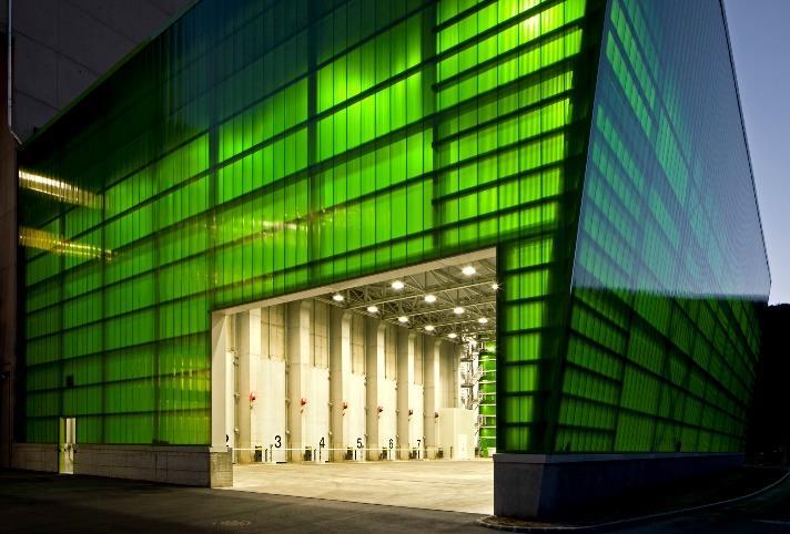 Để thay đổi mọi người cách suy nghĩ về nhà máy xử lý rác thải, các kiến trúc sư đã thiết kế 1 công trình xanh hiện đại. Không chỉ xử lý rác thải,nhà máy còn đốt rác để tạo năng lượng, vì vậy nhà máy được dùng màu xanh lá và xanh ngọc lục bảo mang ý nghĩa tái tạo năng lượng và thân thiện với môi trường, sắc xanh này còn làm dịu và thư giãn mắt công nhân của họ, tạo môi trường làm việc tươi mát, sống động chứ không phải chỉ làm việc với chất thải.