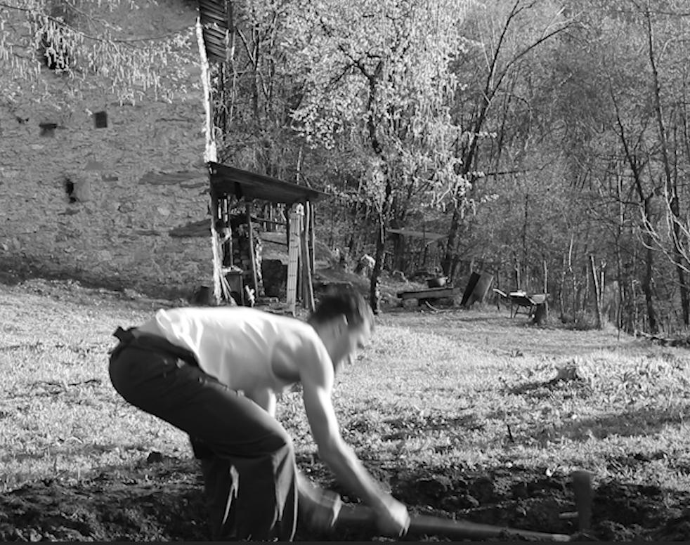 Il paesaggio intorno al giovane è grande e silenzioso. Si avvia verso il boco per poi tagliare la legna da mettere nella stufa per scaldarsi durante la notte.
