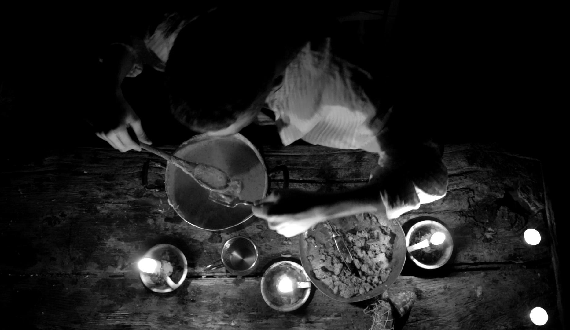 Verso sera, con gli ultimi momenti di luce della giornata, dopo aver finito di tagliare la legna, il giovane lascia a terra l’ultimo ceppo e muove qualche passo verso il lago, vede questa grande massa d’acqua illuminata dal sole che sta scendendo dietro alle montagne, ritorna nuovamente il flashback del giovane nel lago.