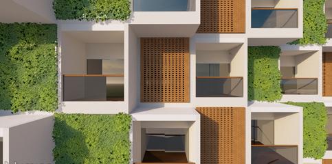 Perforated concrete walls that improves the natural ventilation of the building.