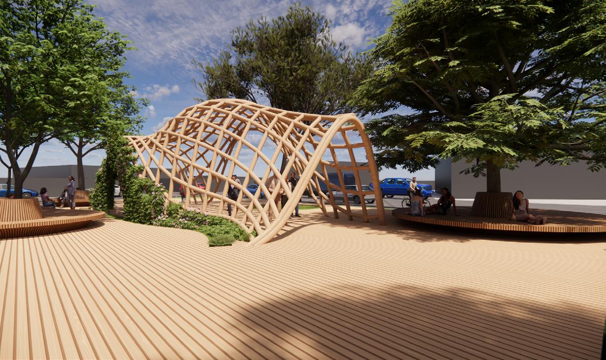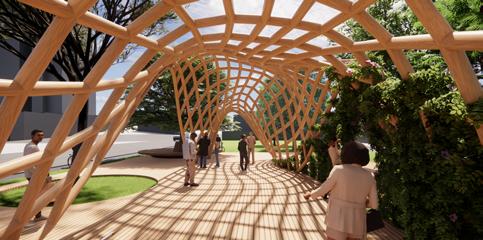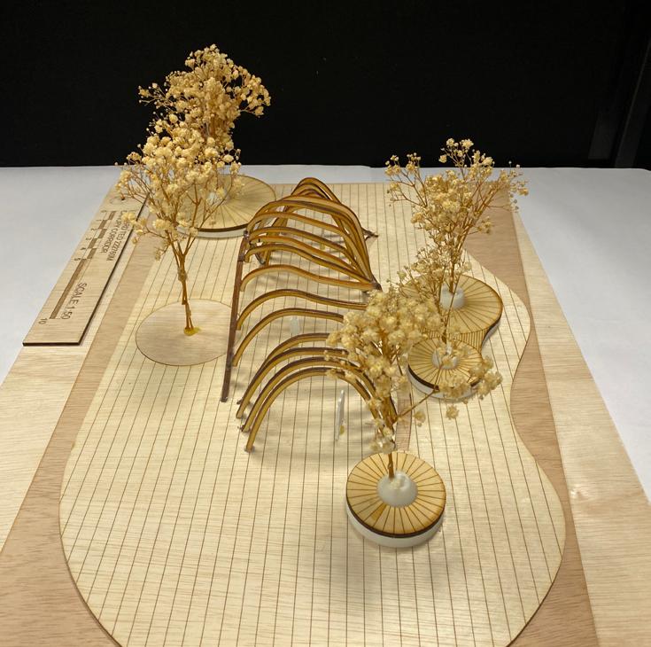 I aimed to merge physical and metaphysical worlds by materializing the tacit philosophy of desired paths - an unspoken yet implicit agreement. Through a parametric pavilion, I transformed the simple dirt path into a space that could be used by passersby, such as workers and commuters, to enjoy a brief moment of respite before returning to their hectic schedules.