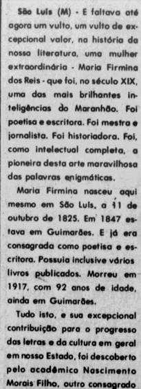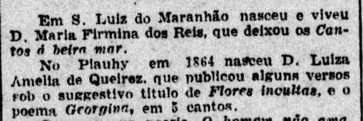 DEZESSEIS NOVAS MENÇÕES A MARIA FIRMINA DOS REIS EM JORNAIS DO SÉCULO XX (1906–1995)
