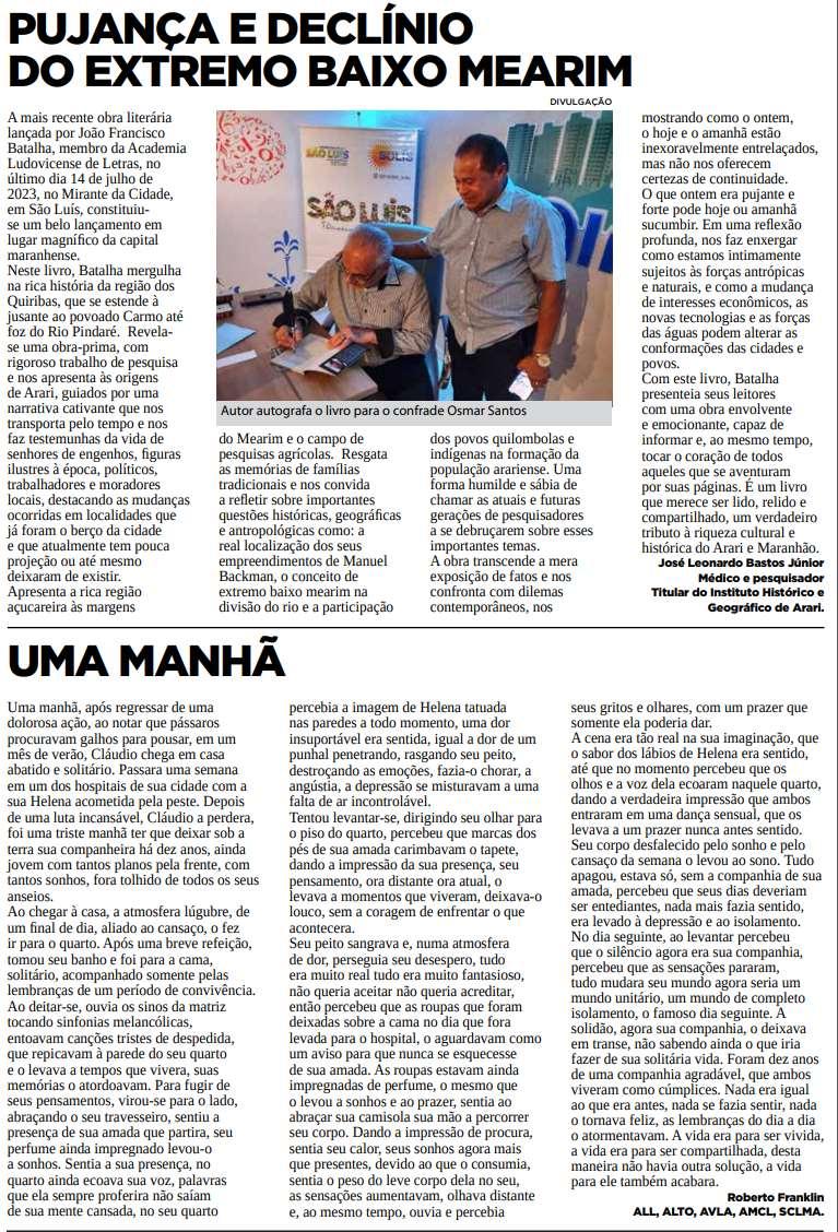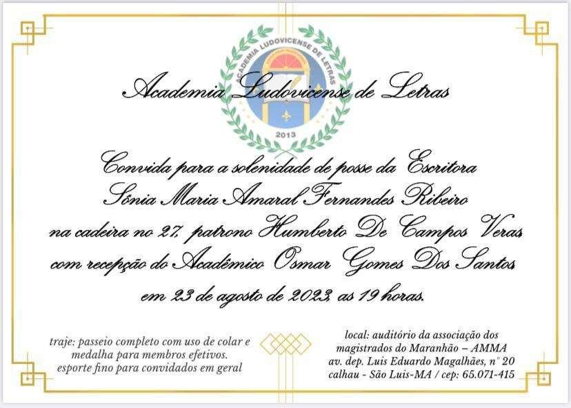 DISCURSO DE POSSE DA CADEIRA DE N° 27, NA ACADEMIA LUDOVICENSE DE LETRAS, EM 23 DE AGOSTO DE 2023, SÃO LUÍS.