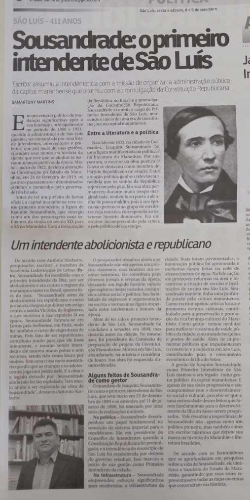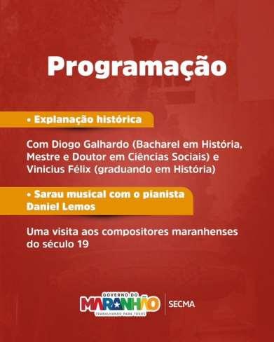 Com concentração na sede da AML (rua da Paz, 84, Centro), às 16h30, o cortejo segue para a praça João Lisboa, avenida Magalhães de Almeida e rua de Santana, com performances poéticas e musicais do grupo Tramando Teatro.