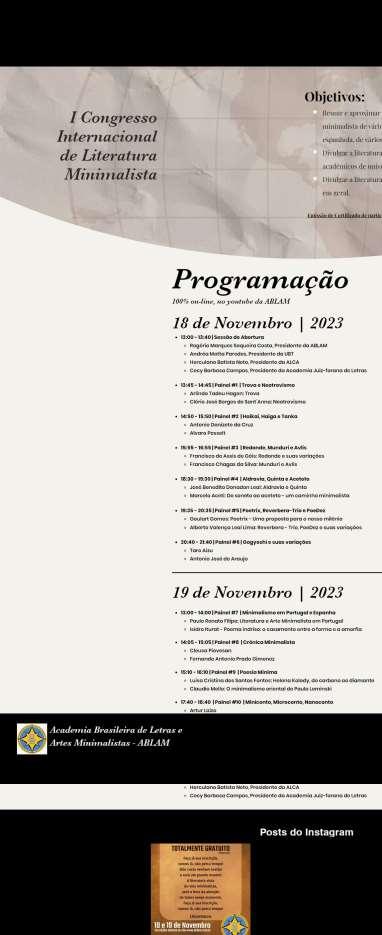 BRASILEIRA DE LETRAS E ARTES MINIMALISTAS - ABLAM, ESTÁ PROMOVENDO