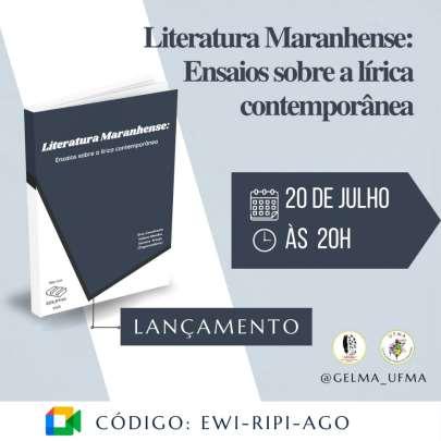 MARANHENSE: ENSAIOS SOBRE O LÍRICO CONTEMPORÂNEO, CONTENDO NOVE ENSAIOS SOBRE POETAS MARANHENSES DA ATUALIDADE, A SABER: ALEX BRASIL, LAURA AMÉLIA DAMOUS, MHARIO LINCOLN, LUÍZA CANTANHÊDE, SALGADO MARANHÃO, KISSYAN CASTRO, DILERCY ADLER, LÚCIA SANTOS E LUIS AUGUSTO CASSAS. O E-BOOK FOI ORGANIZADO POR DINO CAVALCANTE, SAMARA ARAÚJO E HELENA MENDES, E CONTA COM A PARTICIPAÇÃO DE DIVERSOS ESTUDIOSOS DA LITERATURA MARANHENSE. CASO ALGUÉM QUEIRA ASSISTIR AO LANÇAMENTO, O ENDEREÇO DA SALA VIRTUAL ESTÁ NO CARD EM ANEXO.