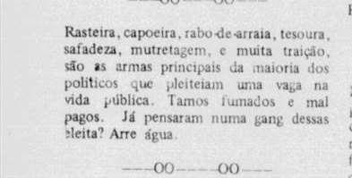 Em diversas edições, posteriores, em se tratando de fatos e intrigas da política local, dos interiores do Piauí, sempre que se queria denegrir alguém, se lhe referia como “capoeira”: