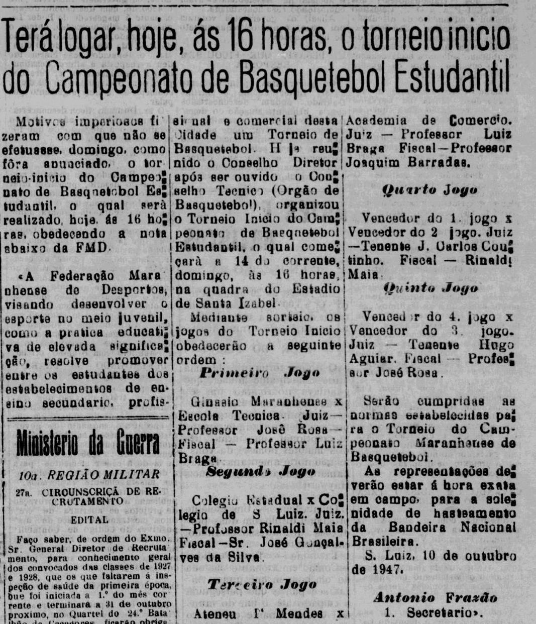 Estou buscando mais informação sobre a memória do esporte no Maranhão, através de buscas na Hemeroteca da Biblioteca Nacional, principal fonte de pesquisa primária de que me utilizo. Cada vez mais surpreendente os achados...