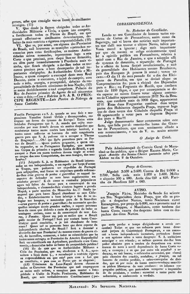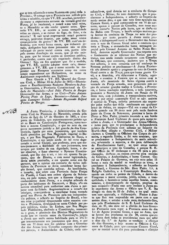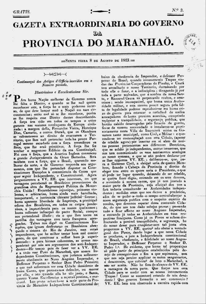 ALGUMAS NOTÍCIAS SOBRE A INDEPENDENCIA DO BRASIL, NO MARANHÃO