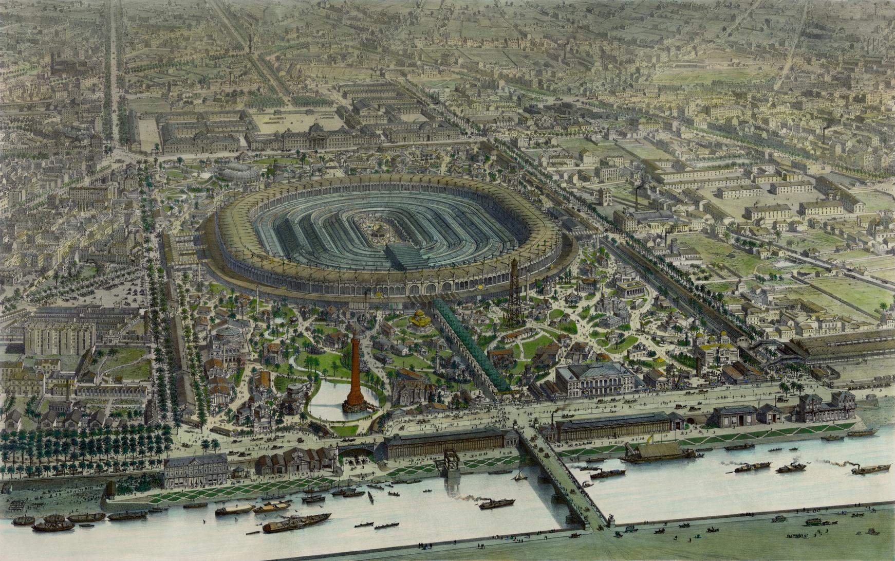Vue officielle a vol d'oiseau de l'exposition universelle de 1867.