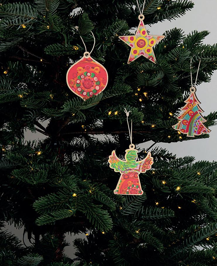 Beautifully boxed in a pack of 4. Artwork on both sides of the decorations. Made from laser cut plywood with natural coloured string. Box