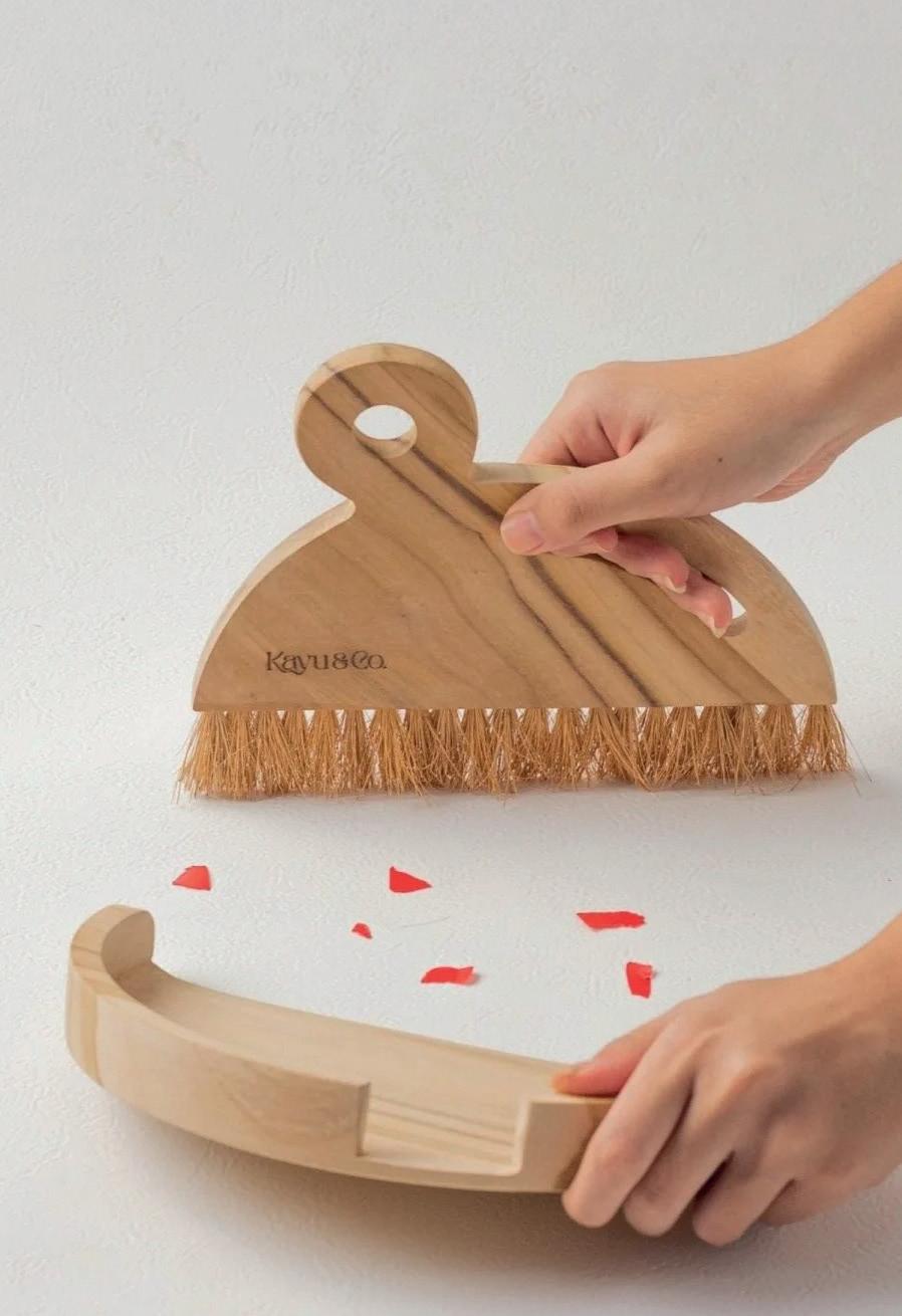11 Wooden Dustpan & Brush Set | CODE: 14403 | $45 Inspired by Scandinavian design, this effective, wooden dustpan and brush set adds nature and an aesthetic to your home. The circular handle allows easy wall hanging. Handmade in Bali. Size: 17cm. “The brush fits inside the pan neatly and the design incorporates a hole for hanging. Both beautiful and useful.”