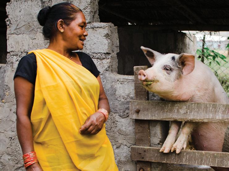Piglets grow very quickly and are easy to look after. For people affected by leprosy or disability with mobility issues, pig farming is a viable way to earn a living. One piglet can fertilise the veggie patch and be sold at market for a good price.