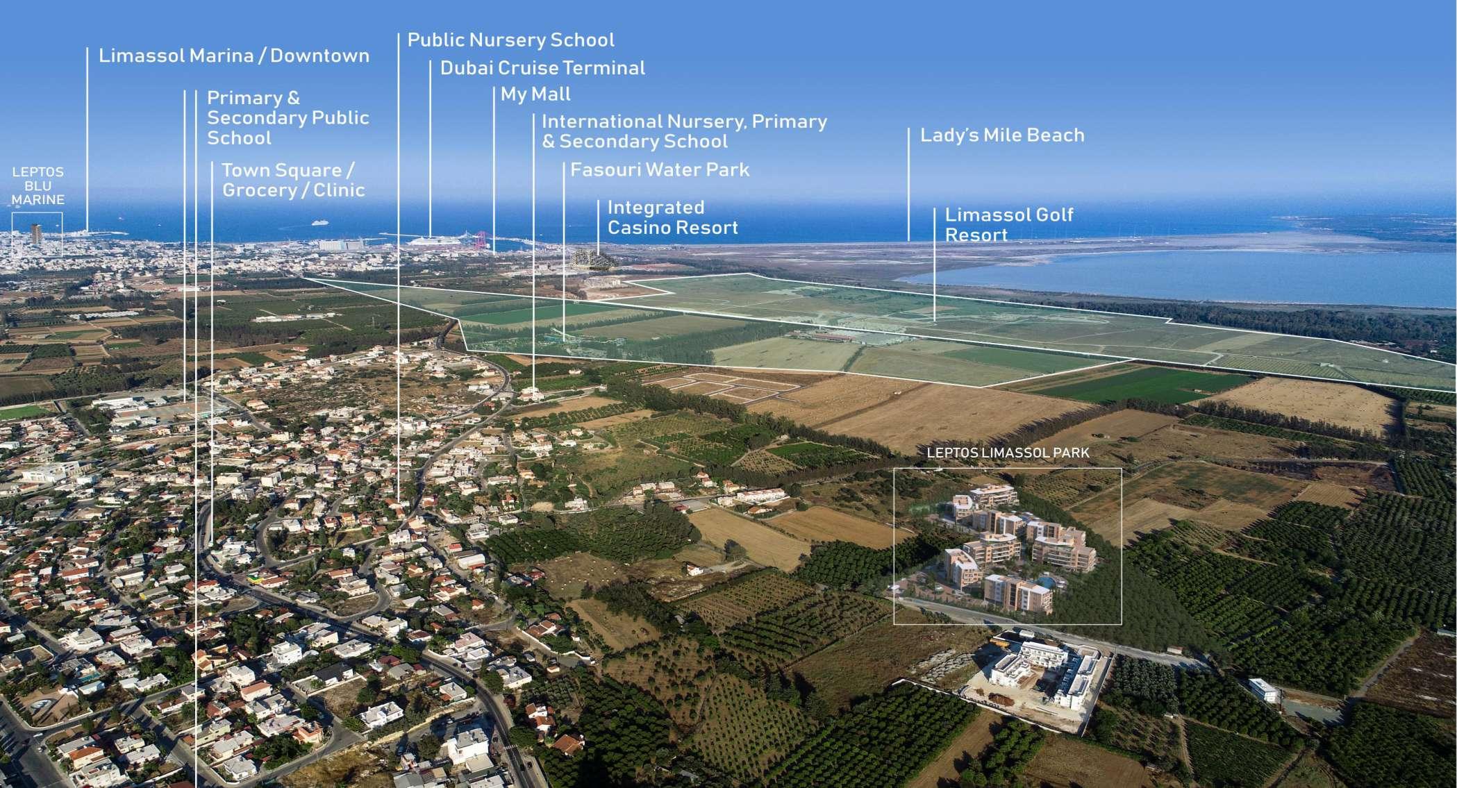 Located 7 minutes' drive from Limassol Park, Lady's Mile is a 5km coastal stretch of stunning, unspoiled sands and shallow waters that runs along the east side of Akrotiri. As the longest beach of Cyprus, Lady's Mile includes a plethora of trendy beach clubs with restaurants and bars, organised water sports facilities, and is well-equipped with lifeguards and first aid services stationed at the beach during the summer months. The surrounding area is planned for major redevelopment, including upgrades to roads, parking, and utilities,designedtorespectandhighlightitsenvironmentalvalue.