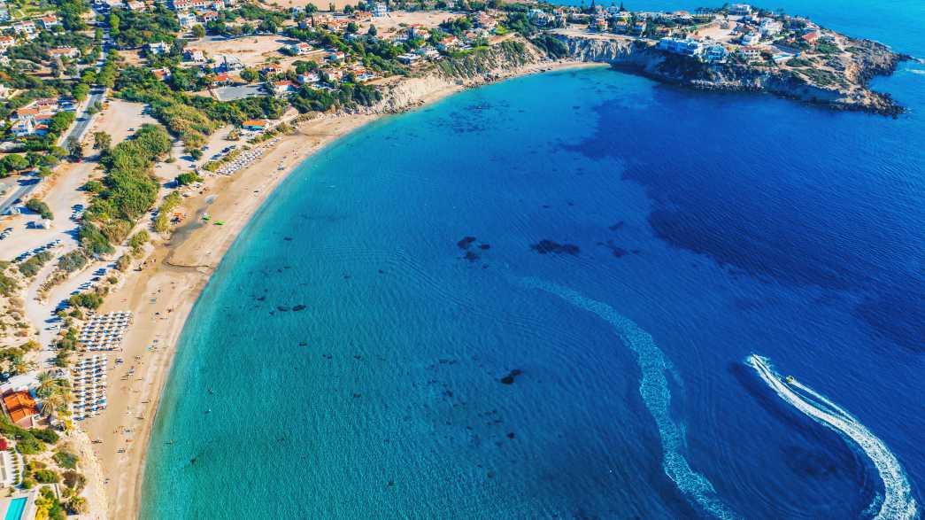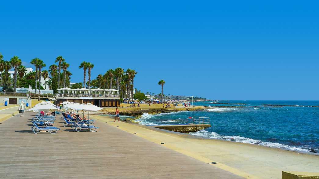 Opposite a stretch of five star hotels and resorts, and the blue flag-awarded beaches of Pafos